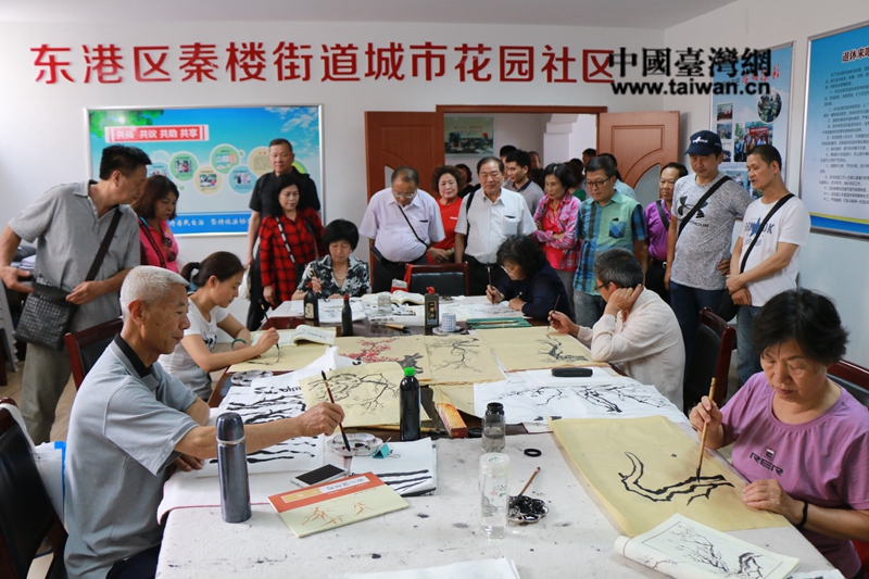 參訪團一行走進社區,觀看了秦樓街道城市花園社區民眾表演的京劇、書畫、舞蹈、合唱等群眾藝術,了解了社區管理與服務。參觀了石臼街道中盛社區中盛幸福苑,大家對中盛社區公寓養老、居家養老、候鳥式養老、特殊護理服務、日間照料中心于一體的養老機構產生濃厚興趣。整潔的環境,精心的服務,較好的醫療條件、有力的生活保障讓參訪團印象深刻。參訪團成員表示,臺灣也面臨著人口老化的問題,“80后”的子女將成為“孩奴及養老奴”,臺灣地區正在推動將各里的中心閑置空間轉化成托老中心。中盛幸福苑的模式,為他們提供了可行性參考。參觀后,參訪團與社區工作人員就社區建設、管理服務、志愿活動等方面進行了座談交流。