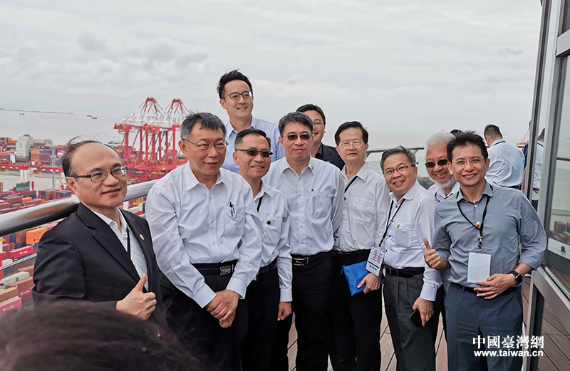 臺北市長柯文哲一行參訪東海大橋、洋山深水港(四期)碼頭、浦東新區城市綜合運營管理中心等地。(中國臺灣網發)