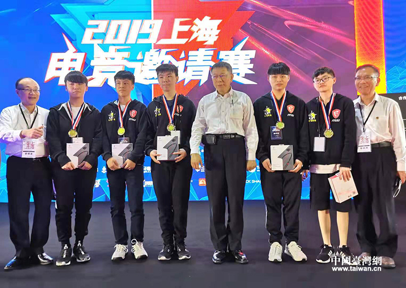 臺北市長柯文哲參加2019上海電競邀請賽,為獲獎者頒獎。(中國臺灣網發)