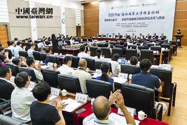 中國臺灣網7月5日訊 日前,2019年海峽兩岸大學校長論壇在廣東湛江舉行,來自海峽兩岸26所高校近100多名大學校長和專家學者齊聚嶺南師范學院,圍繞教師教育振興主題,共同探討新時代下教師教育隊伍建設改革與創新。
