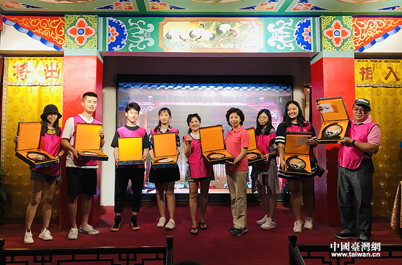 北京市臺(tái)聯(lián)副會(huì)長(zhǎng)陳子云(右4)為文化拓展活動(dòng)優(yōu)勝隊(duì)伍頒獎(jiǎng)。(中國(guó)臺(tái)灣網(wǎng)發(fā))