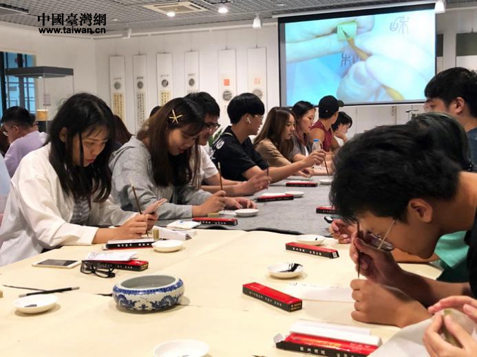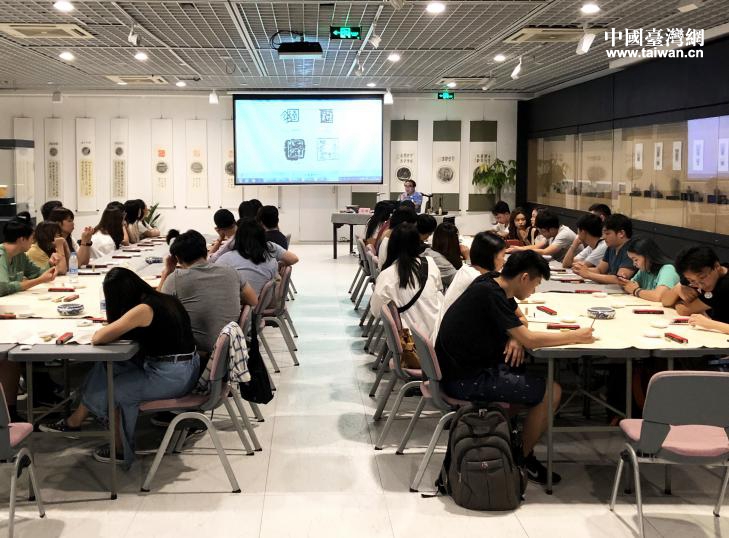 中國臺灣網8月13日杭州訊 “2019中華文化研習營”活動期間,杭州市臺辦組織42位臺灣大學生問學西泠印社美術館,體驗篆刻藝術魅力。