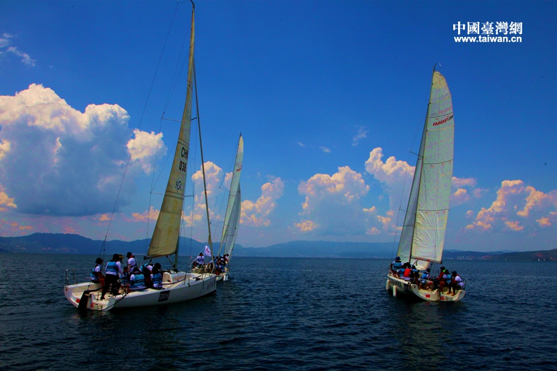 云臺(tái)兩地師生在撫仙湖上進(jìn)行帆船對(duì)抗賽(圖片來源:云南省臺(tái)辦)