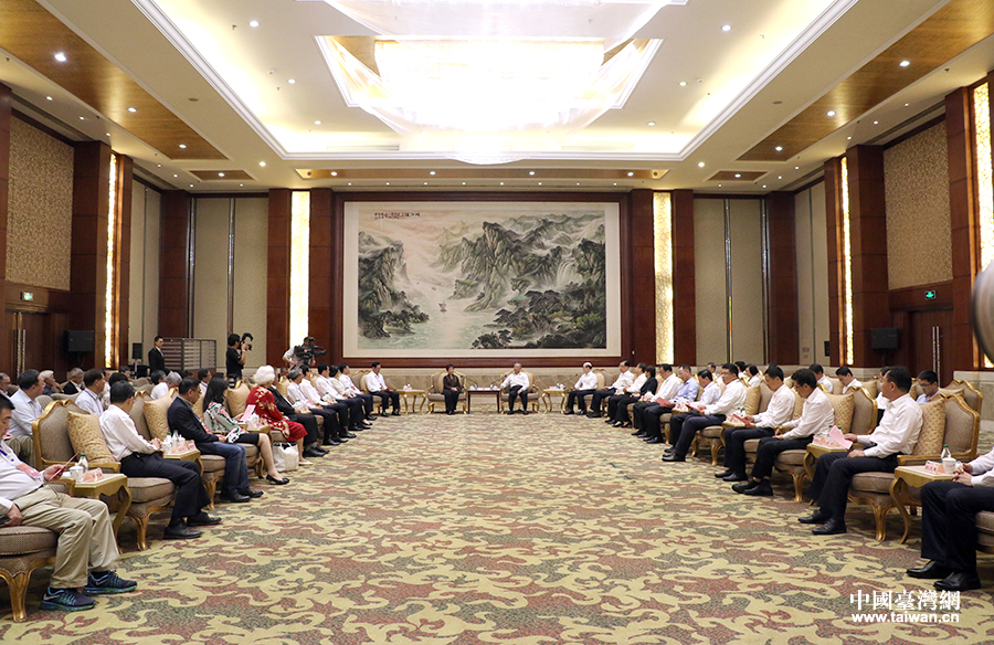 8月31日,山東省委書記劉家義在濰坊會見了由中國國民黨前主席、臺灣中華青雁和平教育基金會董事長洪秀柱率領的前來參加第25屆魯臺經貿洽談會的臺灣嘉賓代表。(中國臺灣網 普燕 攝)