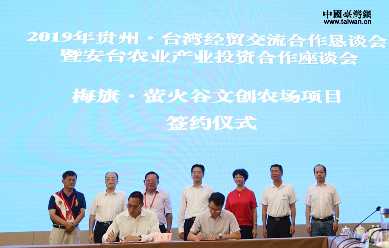 座談會上舉行了梅旗·螢火谷文創農場項目簽約儀式。項目由重慶優然園農業開發有限公司投資實施。該公司是一家集生態旅游觀光項目開發,農業生產技術、科技研發推廣的一家臺資企業,此次投資安順西秀區梅旗·螢火谷文創農場項目,是以螢火蟲為特色,引入臺灣現代農業技術和科普文創技術,打造文創農業園區的農旅結合項目,項目實施落地后,將對安順生態環境保護與旅游開發起到示范帶頭作用,助推安臺兩地農業合作發展。