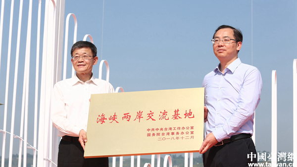 國(guó)臺(tái)辦交流局局長(zhǎng)黃文濤向翠屏區(qū)委副書(shū)記、區(qū)長(zhǎng)蘭宏彬授牌(主辦方供圖)