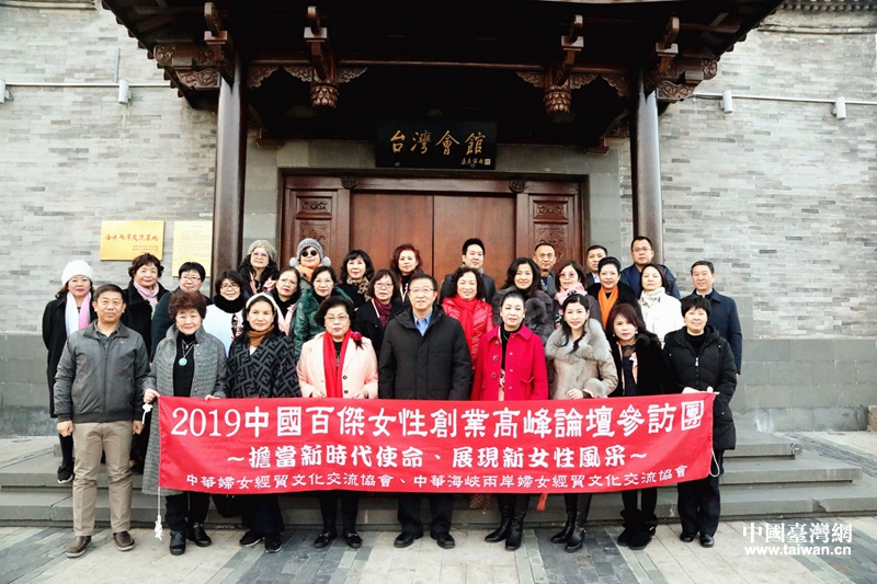 中國臺灣網12月10日訊 12月9日,來京出席“2019中國百杰女性創業高峰論壇”活動的臺灣中華海峽兩岸婦女經貿文化交流協會代表團一行28人,在團長蔡鈴蘭的帶領下,到訪北京臺灣會館。北京市臺聯黨組書記王蘭棟、會長高峰等陪同參觀并交流座談。