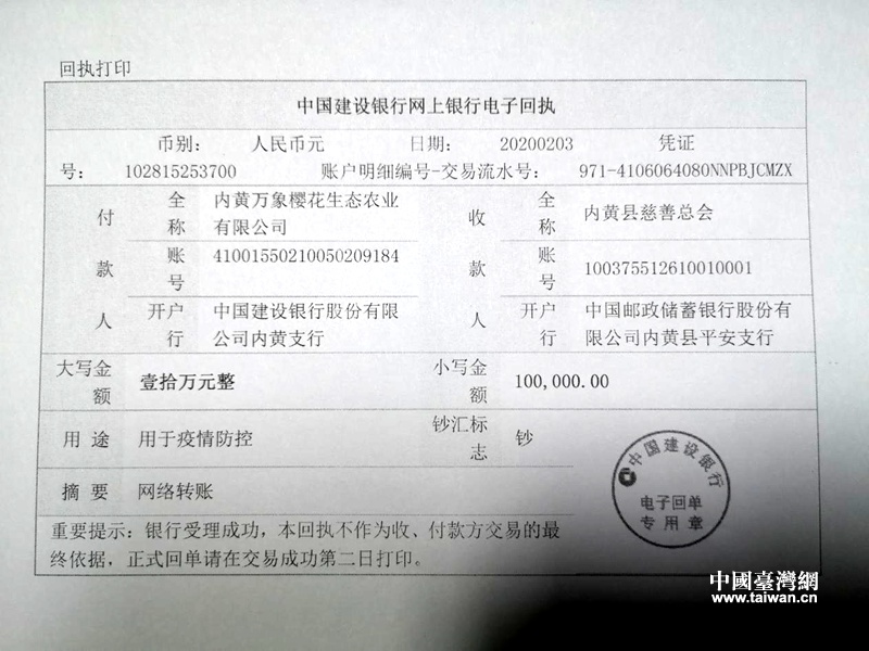河南內(nèi)黃籍臺商人在島內(nèi)憂心大陸 捐款10萬元支援疫情防控