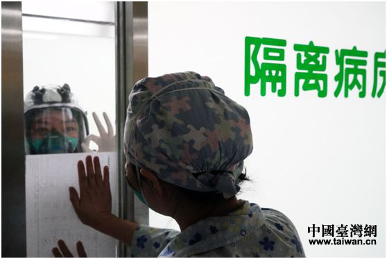看到護(hù)士長(zhǎng)的字條,隔著玻璃的護(hù)士闕珊在里表示Ok(圖片來(lái)源:湖南省臺(tái)辦)