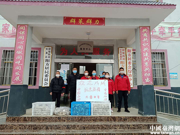 中國臺灣網(wǎng)2月18日訊 為盡早打贏疫情防控阻擊戰(zhàn),奪取疫情防控的全面勝利,黔西南州臺資企業(yè)安龍大秦農(nóng)業(yè)公司積極響應安龍縣委縣政府號召,先后為安龍縣農(nóng)業(yè)局、招堤派出所、棲鳳街道辦事處、棲鳳街道辦事處、響樂村等村民委員會、社區(qū)捐贈食用菌5000斤,為安龍縣境內(nèi)所有監(jiān)測點送去草莓2000斤,合計捐贈共計8.5萬元。(中國臺灣網(wǎng)黔西南州臺辦通訊員 孫政文)