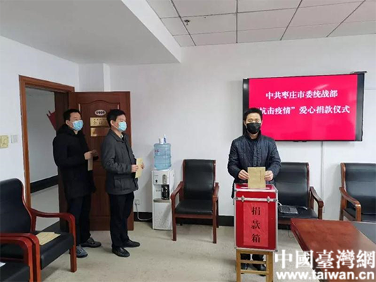 棗莊市廣大臺港澳系統干部在做好各項防控工作的同時,積極捐款捐物,帶頭為“抗擊疫情”奉獻愛心,2月14日當天就捐款2萬多元。用愛心為疫情防控一線加油。(圖片來源:山東省臺港澳辦)