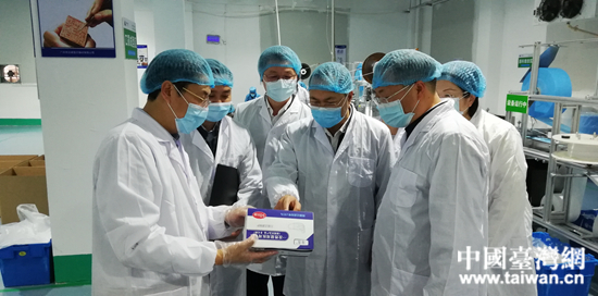 廣州市委常委、統戰部部長盧一先調研臺資企業——廣州市云嶸醫療器材有限公司口罩生產車間。 (中國臺灣網 發)