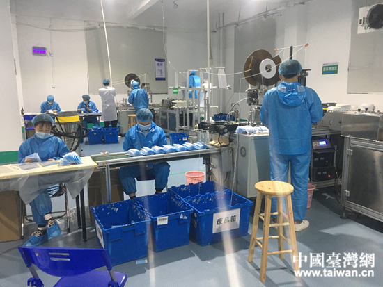 中國臺灣網2月28日訊 新型冠狀病毒肺炎疫情發生以來,防疫物資供應緊張,特別是防護口罩短缺成為全國各地面臨的共同難題,為緩解供應壓力,在廣州市臺辦和白云區等部門的大力支持下,臺資企業“廣州云嶸醫療器材有限公司”(以下簡稱“云嶸公司”)迅速轉產,僅用10余天時間就完成了籌備建廠及送檢、審批等手續實現量產,成為新冠病毒疫情期間全市率先獲得口罩生產資格并投產的臺資企業。目前日產口罩超過10萬只,全力支援抗疫一線。