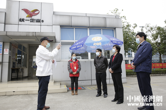2月20日,廣西臺辦主任李東興、南寧市委常委趙紅明走訪臺企南寧泰聯淀粉有限公司、南寧中健包裝有限公司、南寧統一企業有限公司等臺資企業,查看企業防護措施和防控物資儲備情況,現場協調解決有關企業材料運輸困難問題。