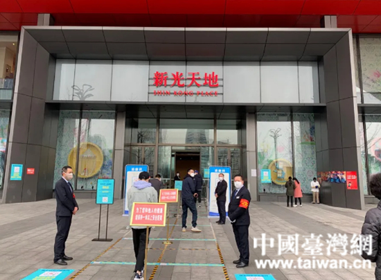 新光天地商場門口設體溫檢測口。 (中國臺灣網 發)