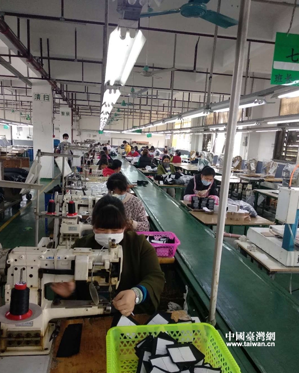 廣西寶悅皮具有限公司車間工人正在緊張作業(圖片來源:廣西玉林市臺辦)