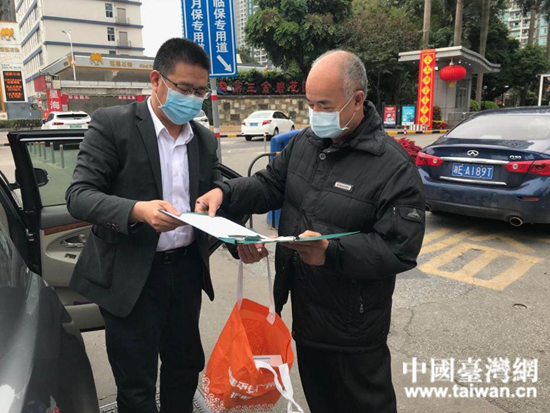 區(qū)臺(tái)辦為留穗臺(tái)商送去口罩。 (中國(guó)臺(tái)灣網(wǎng) 發(fā))