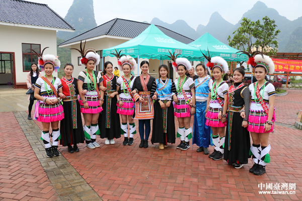 臺灣花蓮同胞到賀州參訪時,與瑤族姑娘的牽手合影。 (中國臺灣網 發)