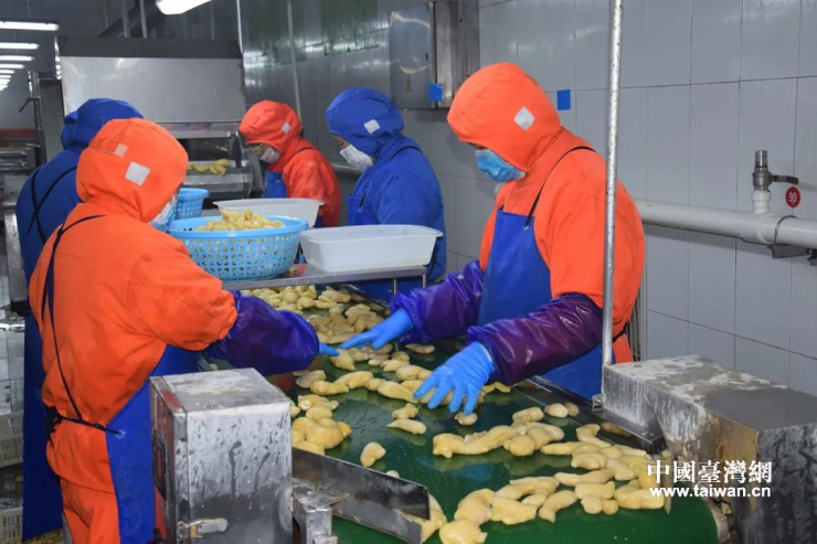 圖為濰坊丸和食品有限公司的工人正在流水線作業(圖片來源:昌邑市委統戰部)