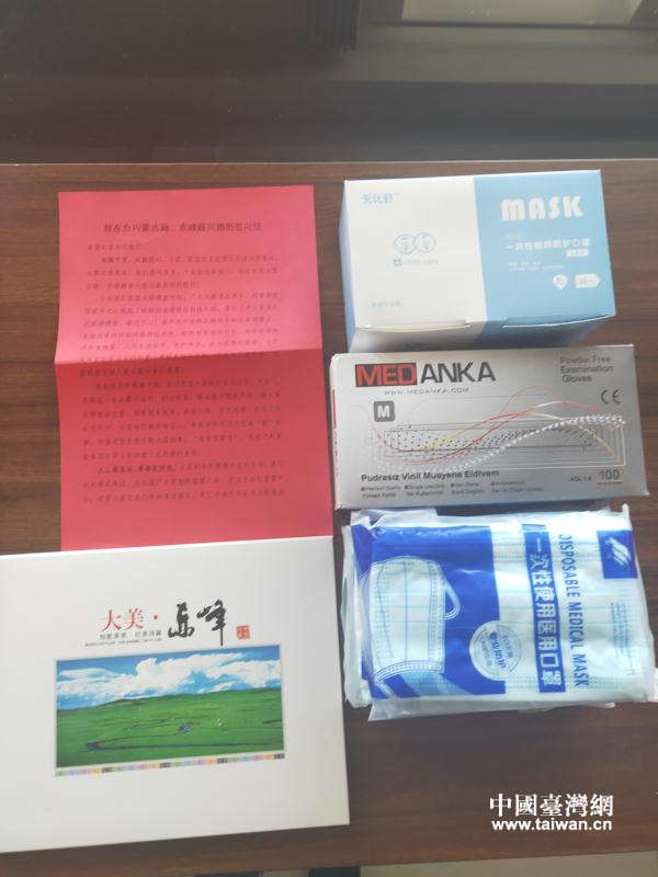 中國(guó)臺(tái)灣網(wǎng)5月7日訊 日前,內(nèi)蒙古自治區(qū)臺(tái)辦和赤峰市臺(tái)辦為部分定居臺(tái)灣的內(nèi)蒙古籍同胞郵寄了“愛(ài)心抗疫包”,送去了家鄉(xiāng)父老鄉(xiāng)親最深切的關(guān)懷和慰問(wèn)。
