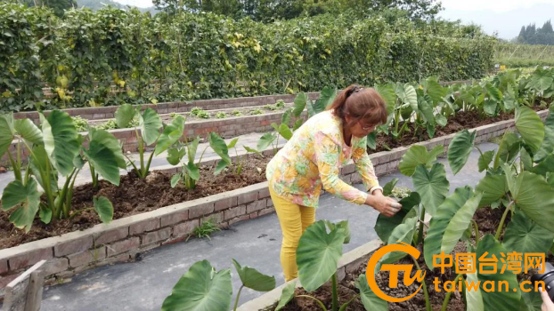 胡媽媽查看農(nóng)作物長勢(圖片來源:四川省臺(tái)辦)