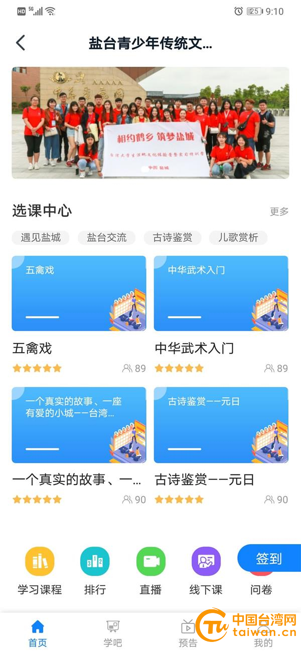 “云平臺”分為“云課堂”、“臺灣人在鹽城”、“鹽臺青年交流”、“主題論壇”四大板塊。“云課堂”開展中華古詩詞鑒賞、武術、繪畫、朗誦、書法等課程教學;“臺灣人在鹽城”分享臺胞在鹽城生活、學習、工作的故事,透過他們的視角,記錄鹽城的變化發展,記敘海峽兩岸情感;“鹽臺青年交流”通過圖片、文字、視頻的方式整理總結鹽臺青年線下活動,疊加鹽臺青年交流效應;“主題論壇”:結合形勢熱點,設定各種討論主題,讓兩岸青年暢所欲言,提升平臺活躍度,激發創新創造思維。(中國臺灣網鹽城市臺辦通訊員 許穎)