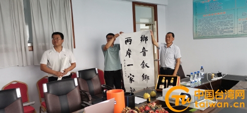 “小時候,鄉愁是一枚小小的郵票……而現在,鄉愁是一灣淺淺的海峽,我在這頭,大陸在那頭。”深情的朗誦從屏幕那頭傳過來,朗誦的正是煙臺萊陽籍的基隆市議員秦鉦,濃濃的萊陽口音引起現場共鳴。因為疫情,淺淺的海峽真的阻隔了雙方面對面交流,視頻連線給了遠在海峽對岸的臺胞一解鄉愁思鄉之苦的機會。秦議員對家鄉有深厚感情,借此活動與侄子連線。通過屏幕,臺屬聯誼會負責人介紹了近年來家鄉的發展變化,向臺胞們暢談大陸的美麗鄉村建設以及精準扶貧好政策,展示了特產煙臺蘋果、萊陽梨以及梨膏等,基隆的煙臺籍臺胞聽了好高興,說道“隔著屏幕都要流下口水了,真心想念家鄉的味道,那種深在骨子里的思鄉回憶的味道。”煙臺市臺屬聯誼會副會長周忠凱激動地說,“我的二舅、四舅還有很多親戚都在臺灣,兩岸就是一家人,這種骨子里的血脈相連是不能改變的。隨著年齡的增長,越發感覺親情可貴,希望有機會到臺灣看看,也希望臺灣的親戚多回家鄉走走,多帶孩子們回故鄉看看,因為這是我們的根,我們的家。”萊陽鄉親特意為在臺親友書寫了“鄉音敘鄉情,兩岸一家親”,以表達兩岸同根同源、兩岸是一家的心聲。