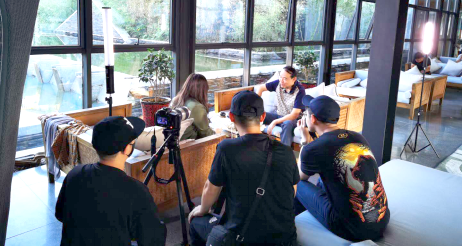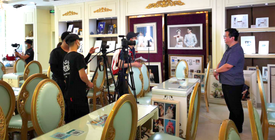 巴黎婚紗總經理鄭振鴻接受采訪。(河北省委臺辦供圖)