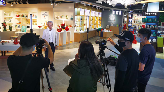 法藍瓷實業有限公司總裁特別助理侯貫中博士接受采訪。(河北省委臺辦供圖)