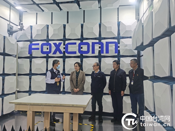 廣西臺辦主任李莉(左二)、副主任趙紅明(右二)在南寧富士康科技園區(qū)檢測中心實驗室調(diào)研。(廣西南寧市臺辦供圖)