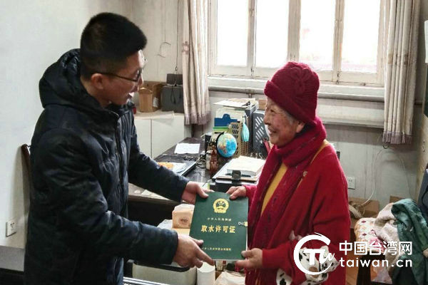 1月12日,寧河區委臺辦干部將更換的新取水證送到了康齡方手中,她非常感動的說道:“非常感謝區委臺辦和當地政府對我無微不至的關懷和照顧,讓我感覺到我們真的是一家人”。(中國臺灣網、天津市寧河區委臺辦聯合報道)