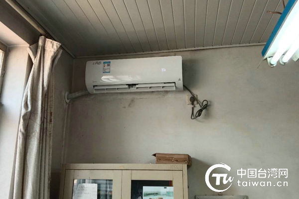 圖為為康齡方老人安裝冬季取暖的空調(圖片來源:天津市寧河區委臺辦供圖)