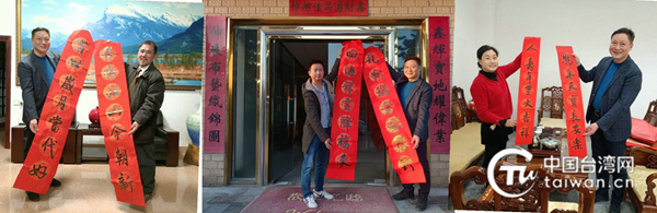 洪世杰主任一行還送上自己書寫的春聯,并轉達南安市委市政府的關懷和新春祝福。(福建省南安市臺港澳辦通訊員林應權)