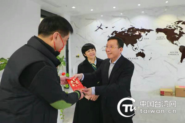 歐陽鋒先后到郴州市轄區的郴州輝鴻電子科技有限公司和資興鏵鋼精密制造有限公司等臺資企業,實地察看企業生產經營、安全生產和疫情防控等情況,詳細詢問臺干們的工作、生活狀況,特別是過節準備情況,認真聽取他們的意見建議,為10名企業員工、臺干代表每人送上一份包含食品、口罩、消毒液、慰問金和慰問信等物資的大禮包,并通過他們向留在郴州過春節的臺干及其家人送去新春祝福和問候。