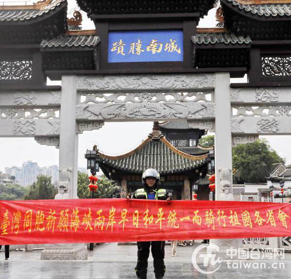 陳文仁在甲秀樓(圖片來源:貴州省臺辦)