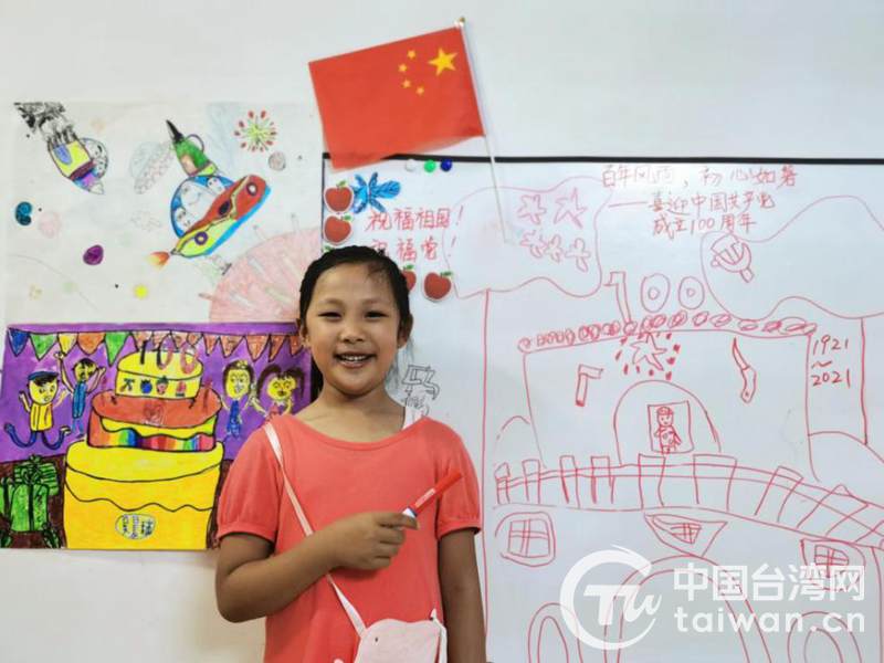 玉溪臺(tái)胞小朋友用繪畫為建黨百年獻(xiàn)禮(圖片來源:玉溪市委臺(tái)辦)