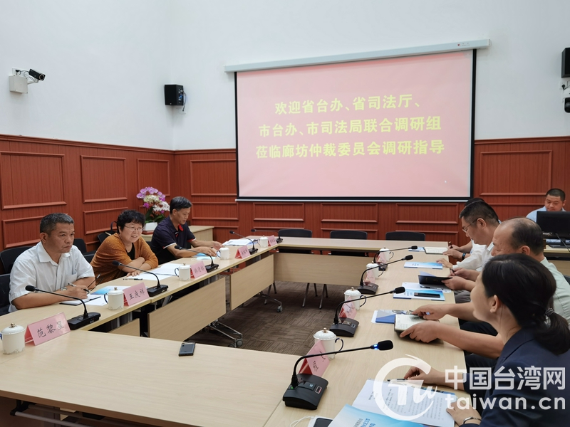 中國臺灣網8月3日訊 近日,河北省委臺辦副主任韓清榕帶領省委臺辦、省司法廳人員組成聯合調研組,到廊坊市臺資企業、仲裁委員會等進行調研走訪,并就涉臺經濟糾紛進行督導。