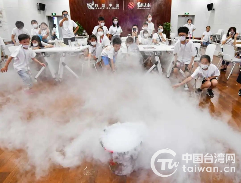 中國臺灣網(wǎng)8月12日訊 “小朋友,你們知道人體有哪三道免疫防線?”“當(dāng)氣球碰到零下196攝氏度的液氮會(huì)發(fā)生什么?”“大家能說出5種常見的滅火工具嗎?”8日,在“鄞為你”逐夢社區(qū)“科學(xué)之星”親子夏令營——鄞臺青少年交流活動(dòng)中,一個(gè)個(gè)新奇的問題吸引了來自臺灣的31名小朋友和家長的濃厚興趣。