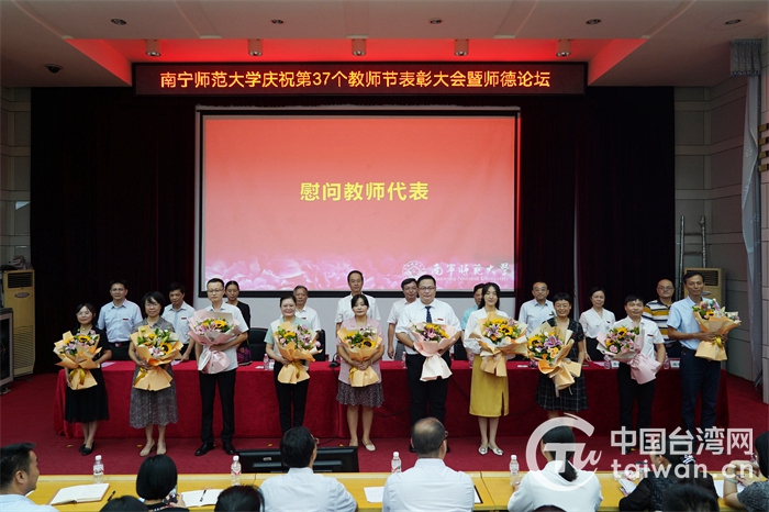 中國臺灣網9月14日訊 在第37個教師節之際,廣西南寧師范大學舉辦慶祝教師節表彰大會暨師德論壇,該校臺籍教師梁洲輔作為教師代表上臺接授鮮花與致意。他說:“在祖國當人民教師是多么光榮自豪的一件事,讓我們一起努力為祖國添磚加瓦!
