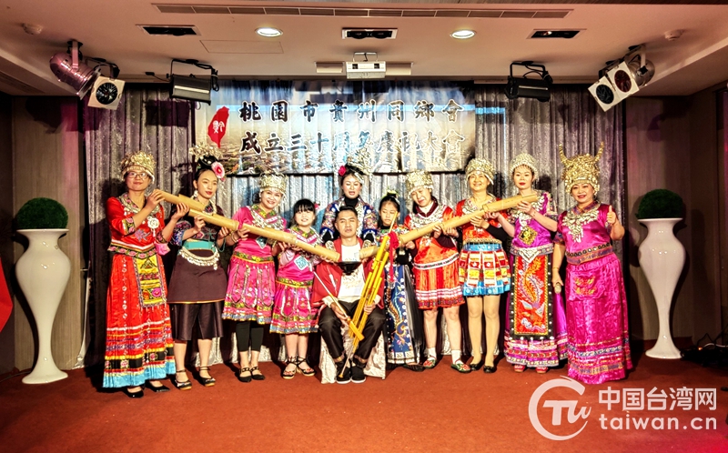 桃園的貴州同鄉(xiāng)們身著少數(shù)民族服裝慶祝盛會(huì)。(圖片來(lái)源:貴州省臺(tái)辦)