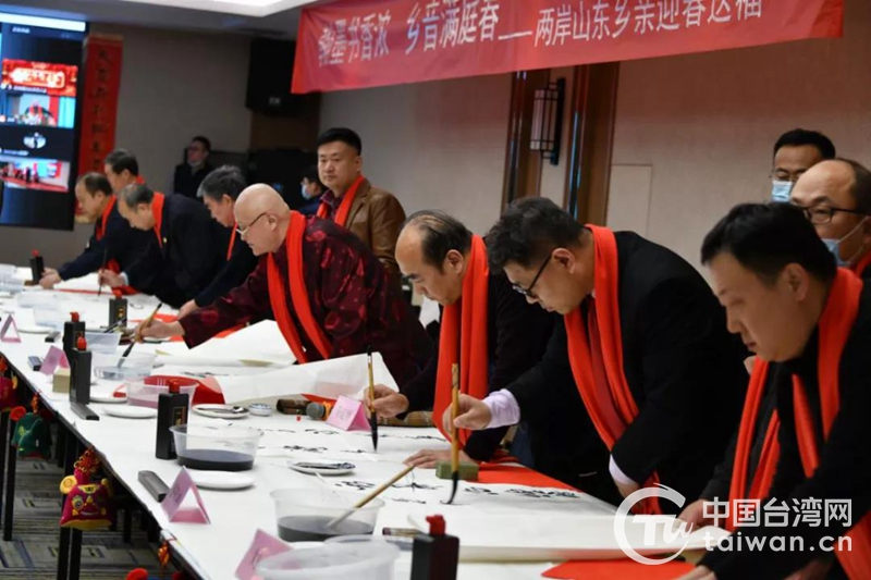 中國(guó)臺(tái)灣網(wǎng)1月14日訊 金牛俯首辭舊歲,瑞虎騰躍迎新春。1月12日,來自山東濟(jì)南與臺(tái)灣臺(tái)北市、基隆市的鄉(xiāng)親們?cè)凇霸贫恕睔g聚一堂,憶鄉(xiāng)愁、敘鄉(xiāng)情、話發(fā)展,共同舉辦“翰墨書香濃,鄉(xiāng)音滿庭春”兩岸山東鄉(xiāng)親迎春送;顒(dòng)。