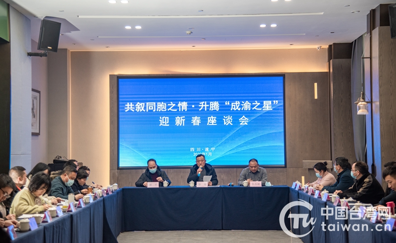 中國臺灣網1月24日訊 近日,四川省遂寧市臺辦組織在遂臺資企業負責人、臺胞臺屬和兩岸婚姻家庭代表及各級臺辦負責同志召開學習十九屆六中全會和省委十一屆十次全會主題宣講會暨“共敘同胞之情·升騰‘成渝之星’”迎新春座談會。