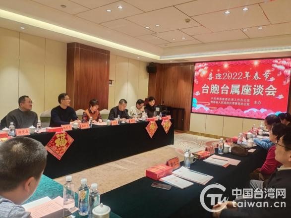 中國臺灣網1月26日訊 近日,青海省臺辦組織10余名在青臺企臺胞臺屬代表歡聚一堂,召開“喜迎2022年春節”臺胞臺屬座談會,聆聽臺胞臺屬心聲,凝聚共識、共謀發展,送上壬寅虎年祝福。
