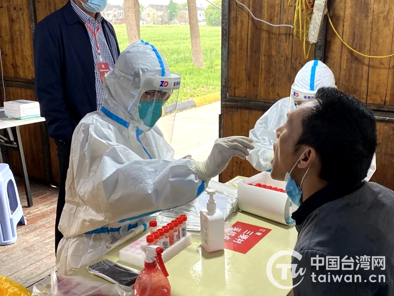 臺青蘇詠寬醫生在進行核酸采集工作(圖片來源:南京市臺辦)