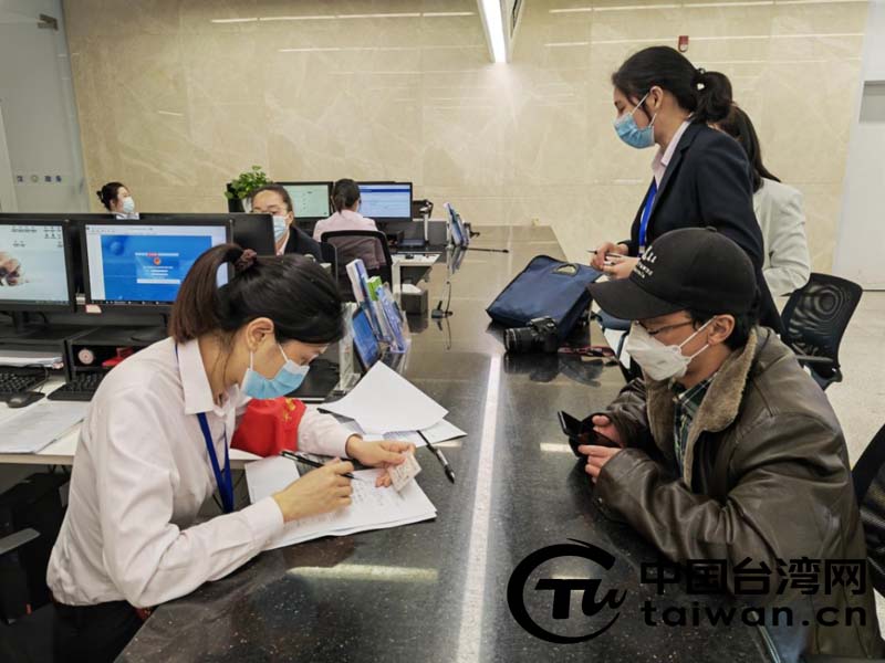 工作人員為臺胞李先生辦理相關手續(圖片來源:武漢市江漢區臺辦)
