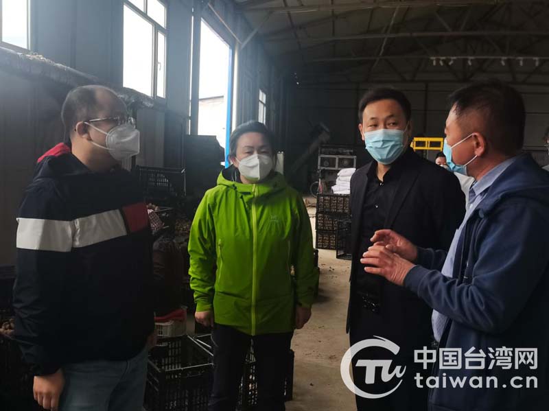 大潤發(fā)東北區(qū)采購總監(jiān)楊臨(左一)考察西豐縣食用菌生產(chǎn)企業(yè)(圖片來源:鐵嶺市臺辦)