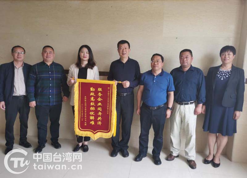 譚莉(左三)代表康師傅(昆明)方便食品有限公司向云南省委臺辦贈送錦旗(圖片來源:云南省委臺辦)