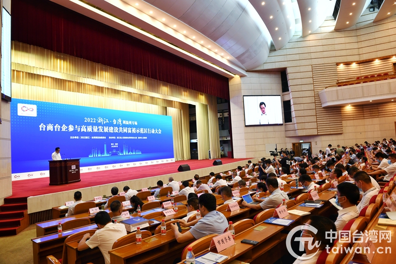 中國臺灣網7月26日訊 2022浙江·臺灣周溫州專場暨臺商臺企參與高質量發展建設共同富裕示范區行動大會近日在溫州啟幕。來自海峽兩岸商界、全國臺企聯臺商、各地臺商協會及企業負責人、在溫臺商臺青、溫商代表等280位嘉賓相聚一堂,探討臺商臺企深度融入新發展格局的路徑,共話新發展理念,共享新發展機遇。