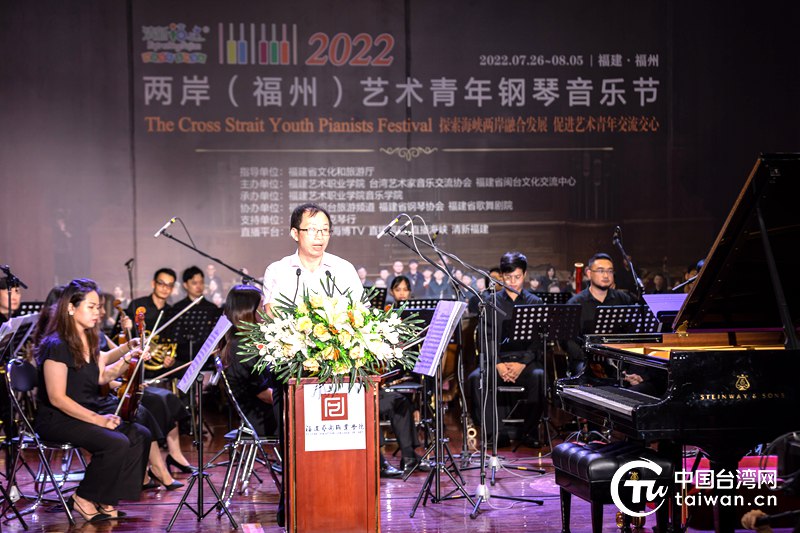 中國臺灣網7月29日訊 7月28日晚,由福建省文化和旅游廳指導,福建藝術職業學院、臺灣藝術家音樂交流協會、福建省閩臺文化交流中心主辦的2022年兩岸(福州)藝術青年鋼琴音樂節,在兩岸鋼琴音樂家悠揚的旋律中啟幕。福建省文化和旅游廳副廳長肖長培、全國臺灣同胞投資企業聯誼會常務副會長李泓蘭等嘉賓及兩岸音樂節專家學者、音樂愛好者近200人出席開幕活動。肖長培、李泓蘭等分別在開幕式上致辭。
