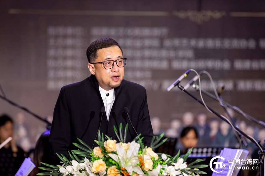 臺灣藝術家音樂交流協會秘書長、兩岸藝術青年聯合交響樂團首席樂手劉融致辭(中國臺灣網發)